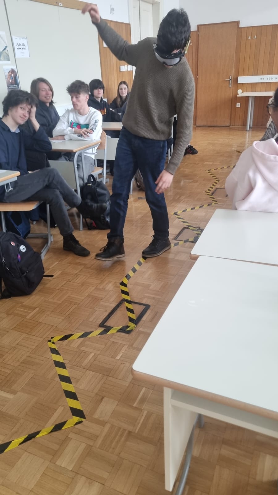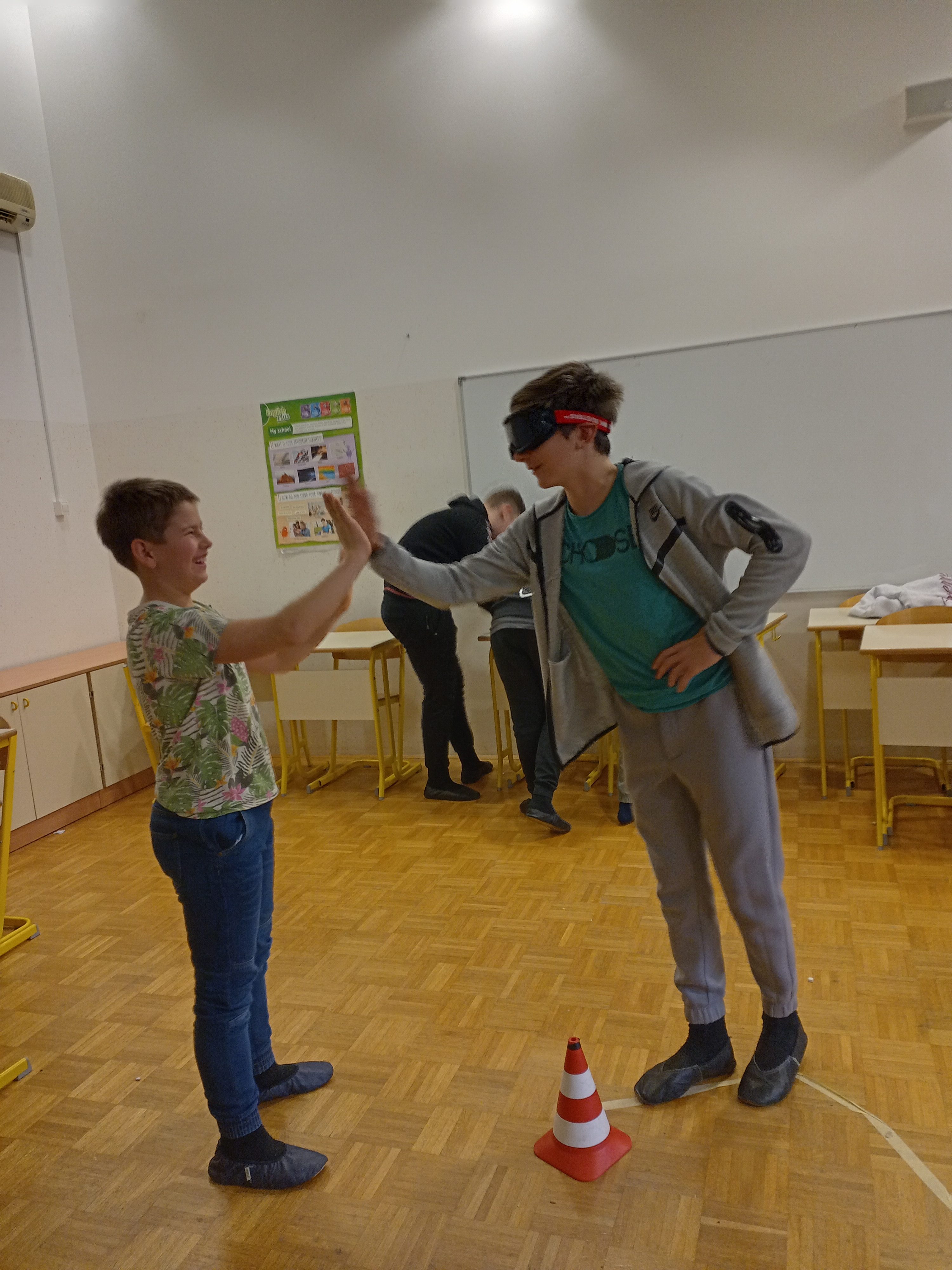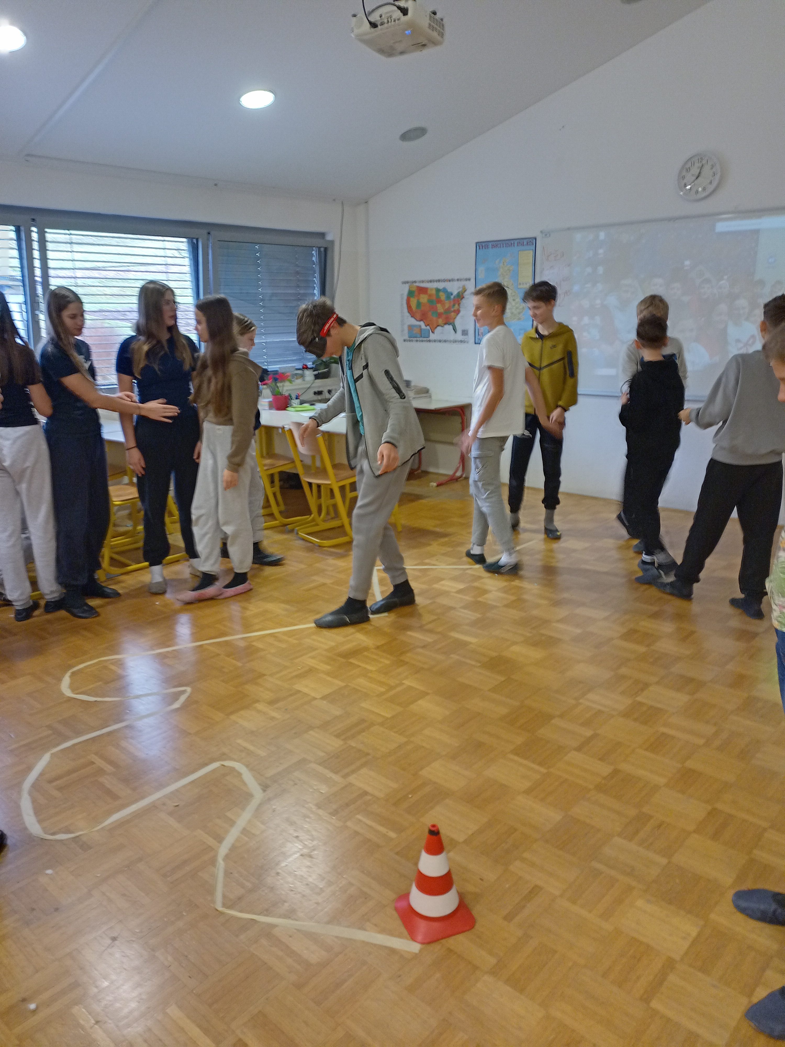 Na OŠ Škofljica smo delavnico izvedli skupaj z učenci 7. razredov, pri čemer je bil poudarek na razumevanju vpliva odločitev, odgovornosti in pritiska okolice. Posebej pomemben del delavnice je bil preizkus pijanih očal, ki je učencem v varnem okolju omogočil izkustveno razumevanje, kako alkohol vpliva na zaznavanje, ravnotežje in odzivni čas. Prav ta izkušnja je odprla prostor za pogovor o tveganjih in pasteh v prometu ter o pomenu pravočasne in odgovorne odločitve.