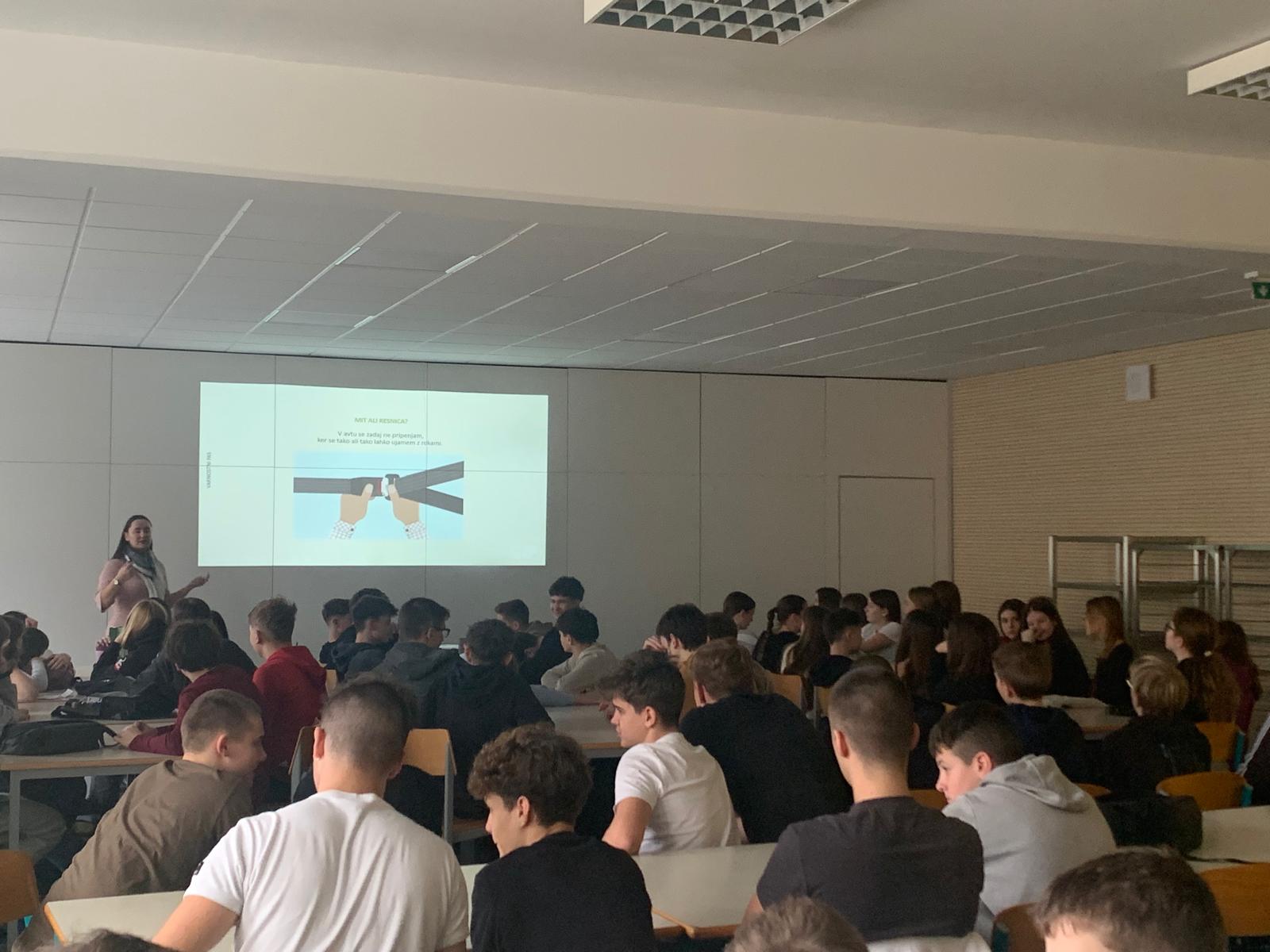 Teden delavnic smo zaključili na Gimnaziji Antona Aškerca v Ljubljani, kjer smo izvedli prvo delavnico 5x STOP je KUL za dijake 1. letnika in s tem začeli še zadnji sklop delavnic na tej gimnaziji. V jesenskih in zimskih mesecih smo namreč z dijaki višjih letnikov že izvajali delavnice BODI TI (za 3. in 4. letnike) ter 5x STOP je KUL za 2. letnike. Tokrat smo prometno varnost naslovili z najmlajšimi dijaki, ki so šele na začetku srednješolske poti, a se že vsakodnevno soočajo z odločitvami, ki lahko pomembno vplivajo na njihovo varnost.